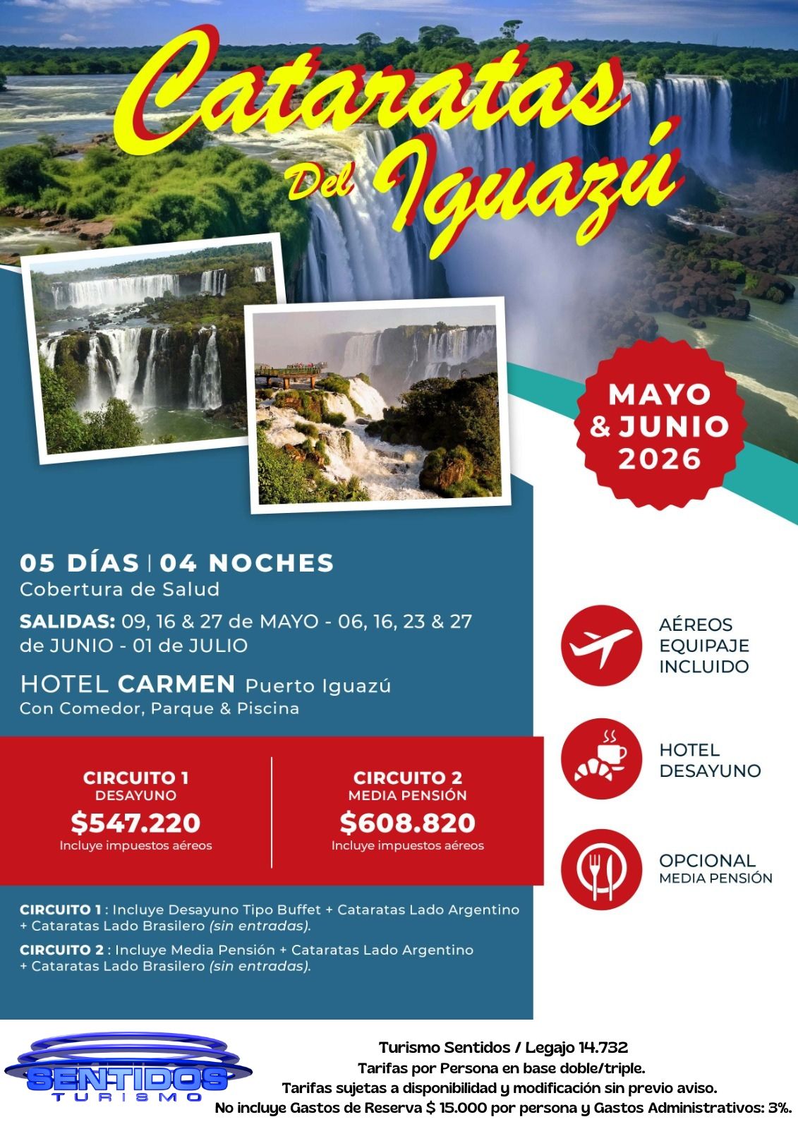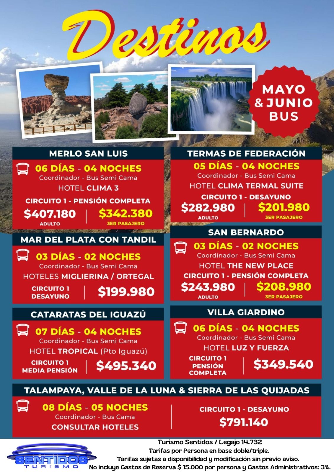 En Turismo Sentidos EVT ofrecemos paquetes turísticos nacionales e internacionales ✈️. Viajá a destinos como Iguazú, Mendoza, Mar del Plata, Villa Carlos Paz, Ushuaia y más, con beneficios exclusivos.